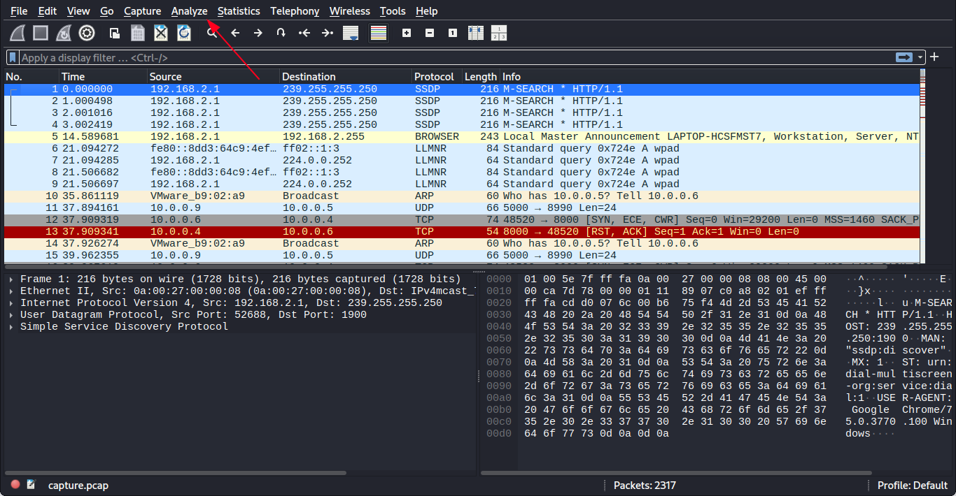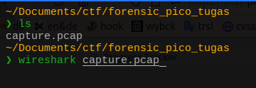 Saya mendapatkan sebuah file bernama capture.pcap. Lalu saya membuka file tersebut menggunakan wireshark.