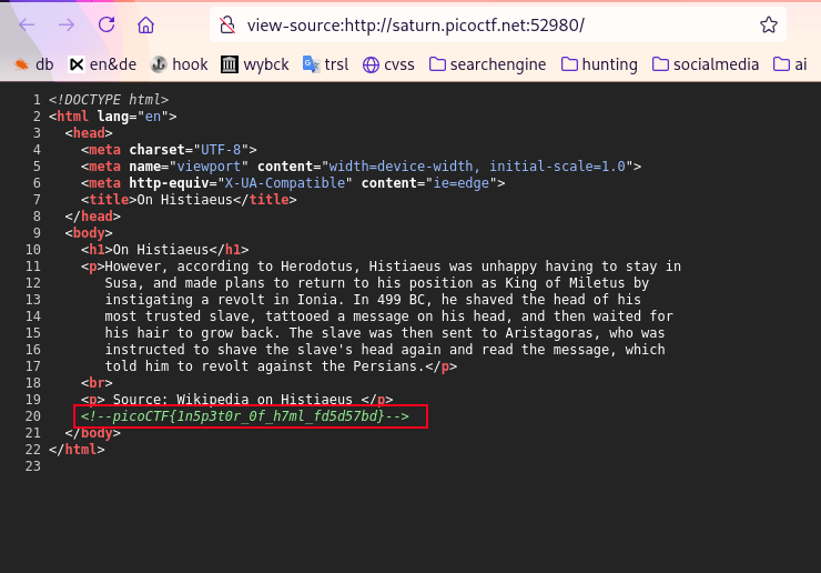 Benar saja pada saat saya melihat source code pada website target saya langsung mendapatkan flagnya di baris komentar.